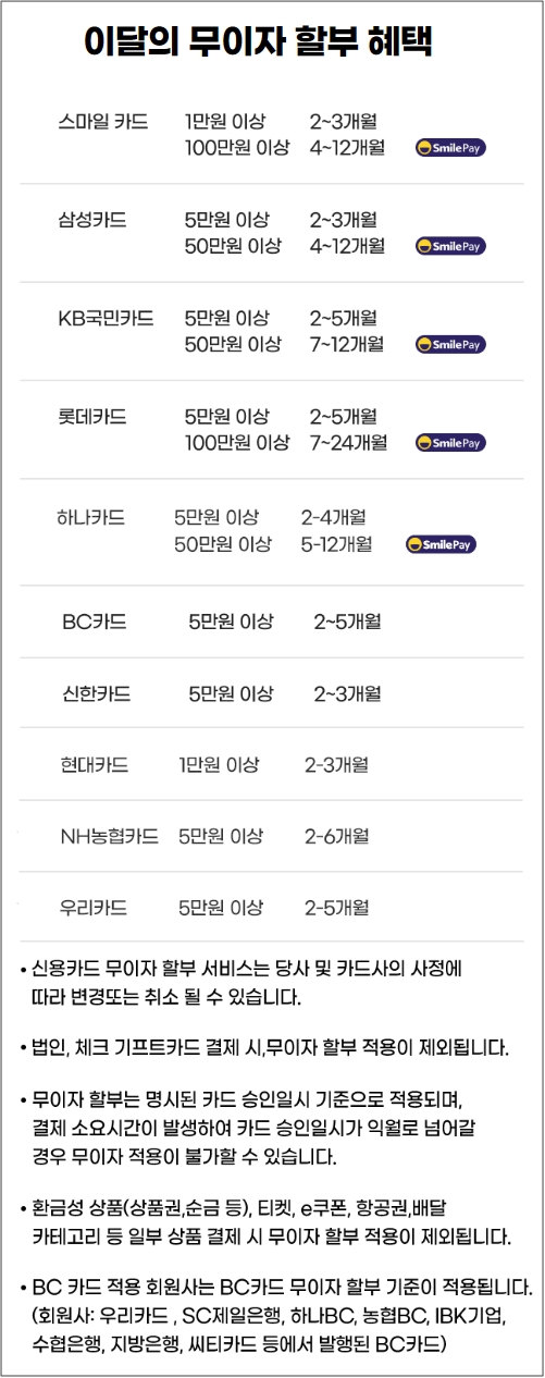 10월 신용카드 무이자 할부 혜택을 아래와 같이 안내드리니 이용에 참고하시기 바랍니다.