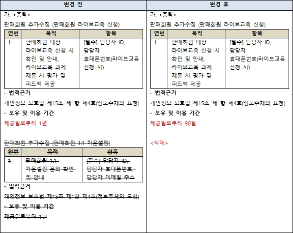 개인정보의 수집·이용 등을 현행화하여 당사의 개인정보처리방침이 개정될 예정입니다.