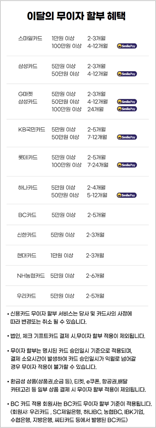 12월 신용카드 무이자 할부 혜택을 아래와 같이 안내드리니 이용에 참고하시기 바랍니다.