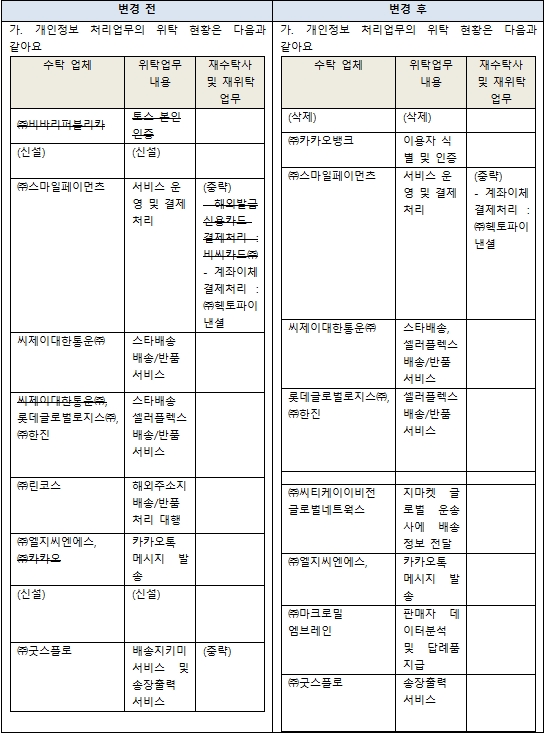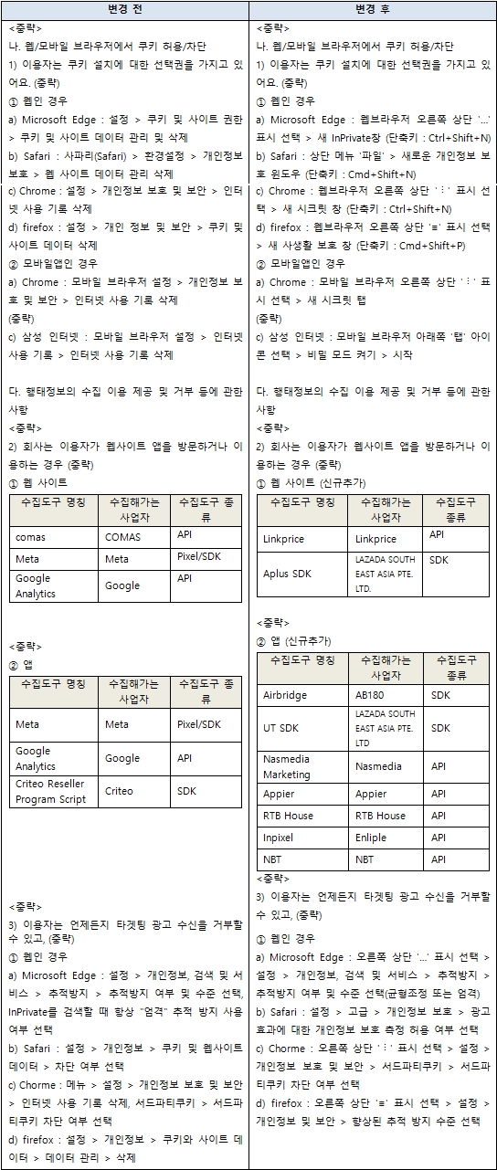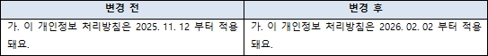 개정된 개인정보처리방침에 대한 문의는 아래의 [관련문의]를 통하시거나 고객센터로 문의해 주시길 바라며, 개정된 개인정보처리방침 내용에 동의하지 않으시는 경우, 해당 조항과 관련한 서비스 사용의 전부 또는 일부에 제한이 있을 수 있습니다.